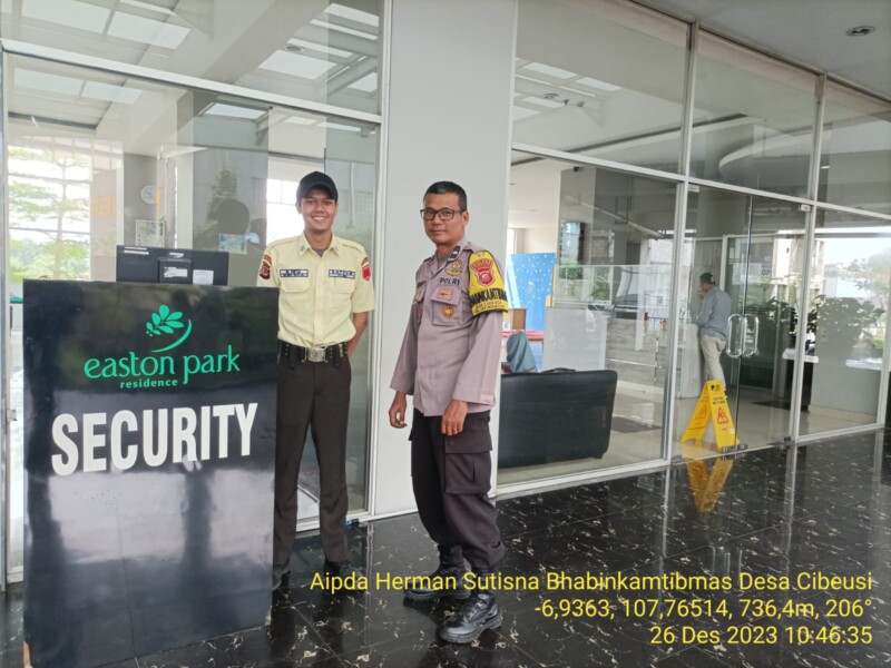 Kapolsek, menerangkan seperti yang di lakukan Aipda Herman Sutisna personil Polsek Jatinangor Polres Sumedang Polda Jabar, yang mengemban sebagai Bhabinkamtibmas Desa Cibeusi rutin menyambangi Petugas Satpam sekaligus memberikan himbauan agar para anggota Satpam bisa melaksanakan tugas menjaga keamanan di lingkungan Apartemen Easton Park Jatinangor dengan penuh kewaspadaan.