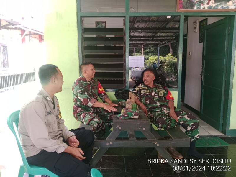 Sumedang mitrapolisitv.com Sesuai tugas pokok Polri sebagai pelindung pengayom dan pelayanan masyarakat, Bhabinkamtibmas Polsek Cisitu Bripka Sandi Setia Y. melaksanakan Silaturahmi ke Koramil Situraja. Senin (08/01/2024).