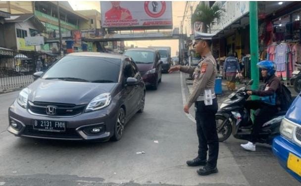 Urai Kemacetan Jalan Lintasan Polsek Sukanagara Lakukan Yanmas dan Gatur Lalin Depan Pasar