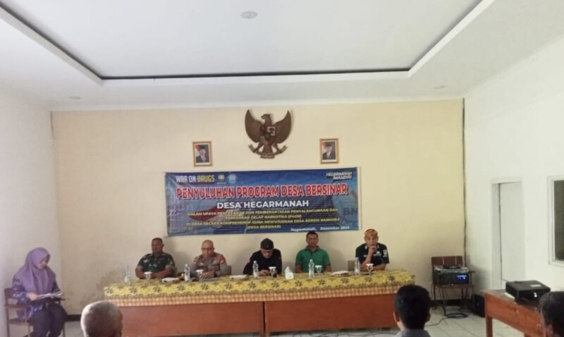 Kegiatan Sosialisasi tersebut disampaikan oleh Kapolsek Jatinangor yang bertujuan untuk memberikan Paparan penyuluhan dan sosialisasi bahaya Narkoba kepada masyarakat desa hegarmanah terutama Generasi muda tentang bahaya Narkoba serta kenakalan remaja untuk menciptakan Desa Bersinar Bersih dari Narkoba.