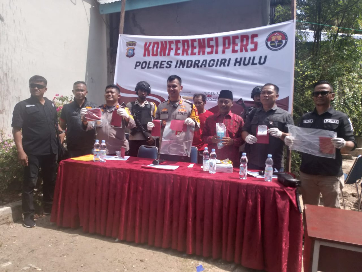Kapolres Inhu AKBP Fahrian Saleh Siregar Sik saat mengadakan Pers Rilis di Maan Z ditangkap mengatakan Bahwa Zaidi alias (Z) diamankan bersama rekannya berinisial (R) pada Jum’at 27/12/2024 berikut sejumlah Barang bukti.