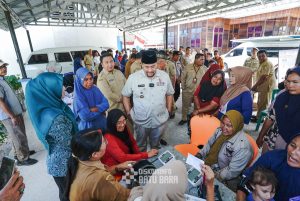 Bupati Batu Bara Bapak H. Baharuddin Siagian, SH, M.Si bersama Wakil Bupati Bapak Syafrizal, SE, M.AP dan didampingi Sekda Batu Bara Ibu Norma Deli Siregar dan para Kepala OPD memantau secara langsung proses pelayanan kepada masyarakat.