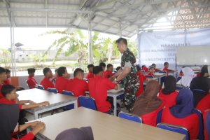 Dalam kesempatan tersebut, Dandim menyampaikan materi tentang kedisiplinan, nasionalisme, dan bela negara kepada para siswa baru. Ia menekankan pentingnya menanamkan nilai-nilai kedisiplinan sejak dini sebagai bekal membentuk karakter generasi muda yang tangguh dan bertanggung jawab.