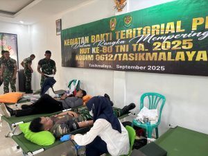 Tasikmalaya, Jabar, Media mitrapolisi tv, com, Rabu 17/9/2025, – Aula Kodim 0612/Tasikmalaya pada Senin, 17 September 2025, menjadi saksi nyata kepedulian prajurit terhadap sesama. Dalam rangkaian kegiatan bakti teritorial memperingati Hari Ulang Tahun ke-80 Tentara Nasional Indonesia (TNI) Tahun Anggaran 2025, digelar aksi donor darah bekerja sama dengan UDD PMI Kota Tasikmalaya.
