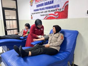 PURWAKARTA, Jabar, Senin 25/8/2025 – Dalam rangka menyambut HUT ke-77, Polwan Polres Purwakarta, menggelar kegiatan Bhakti Kesehatan Donor Darah, pada Senin, 25 Agustus 2025.