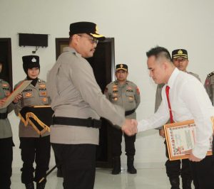 Penyerahan penghargaan sebagai bentuk apresiasi dari orang nomor satu di jajaran Polres Purwakarta, tehadap kinerja Unit Jatanras Satreskrim di bawah pimpinan kanit, IPDA Omad Abdullah, S.H., M.H.,CPHR.