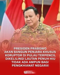 Jakarta, Media mitrapolisi tv.online,com – Presiden Prabowo Subianto menegaskan komitmennya dalam memberantas korupsi dengan merencanakan pembangunan penjara khusus bagi para koruptor di pulau terpencil. Pernyataan tersebut disampaikan saat ia meluncurkan tunjangan bagi guru Aparatur Sipil Negara (ASN) daerah di Plaza Insan Berprestasi, Kementerian Pendidikan Dasar dan Menengah (Kemendikdasmen), Jakarta Pusat, pada Kamis (13/3/2025).