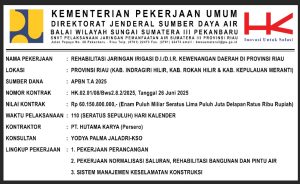 RIAU,Media Mitrapolisi tv.Com, (Kaperwil Riau- Badrizal) Rokan Hilir , Proyek normalisasi sungai dan perbaikan pintu air yang dilaksanakan oleh Balai Wilayah Sungai (BWS) Sumatera III Kementerian Pekerjaan Umum dan Perumahan Rakyat (PUPR) Direktorat Jenderal Sumber Daya Air, yang berlokasi di Dusun Bakau Akip, Desa Sungai Panji-panji, Kecamatan Kubu Babussalam, Kabupaten Rokan Hilir, kembali menuai kritik keras dari masyarakat dan pemerhati lingkungan.