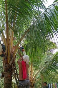 Meski selama ini terisolasi ada pemandangan yang cukup unik dan cukup memotivasi usaha warga RT 06 ini. yakni penyadap pohon kelapa dengan mengambil nira kelapa.